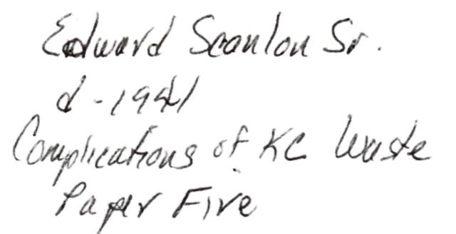 Firefighter Scanlon died of injuries suffered when a wall fell on him while he was fighting a fire in the Kansas City Waste Paper Company.