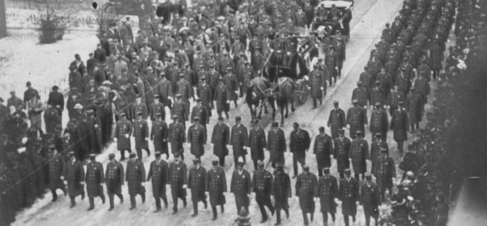 While operating a hose line on the second floor of a fire in a four story building, a collapse occurred killing Captain Lynch and injuring several other firefighters. The building, which was located at 415-417 North Fourth Street housed the Day Rubber Company.