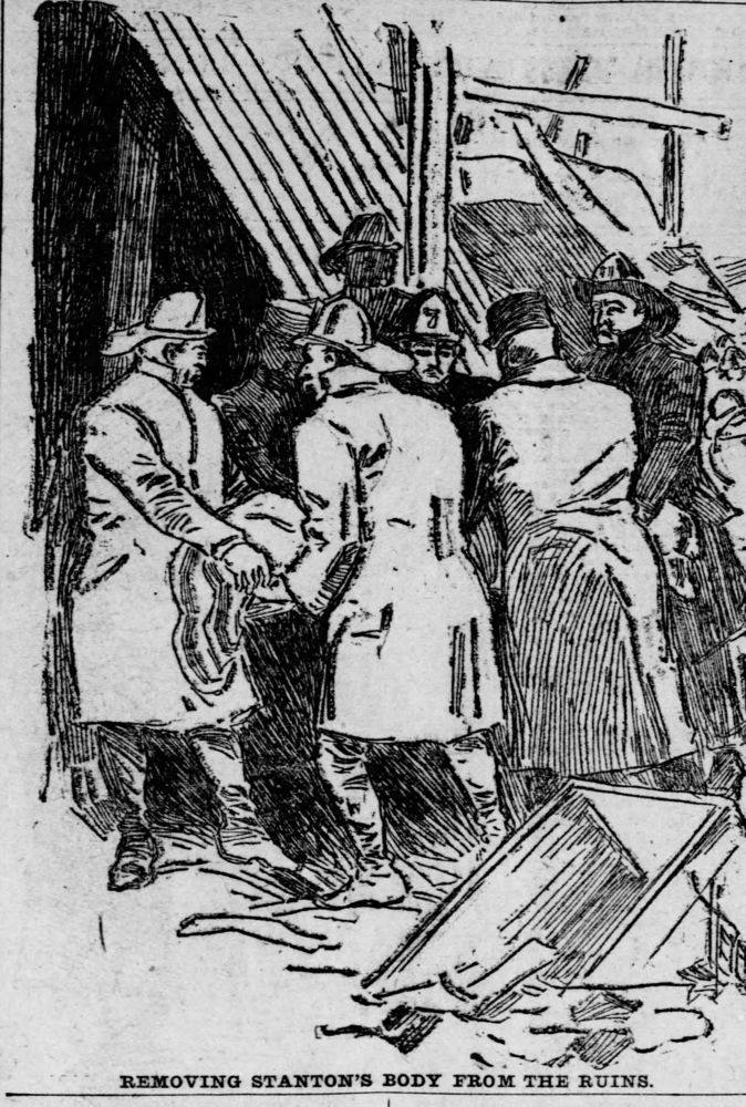 While fighting a fire in the A.B. Aloe building at 415 Broadway, Captain Stanton died following a collapse. The collapse also killed Firefighters Nimrod Kerley, James Roddy, and Owen Hines. It also injured six other firefighters. Captain Stanton was assigned to Chemical Company #1 at Engine House #15.
