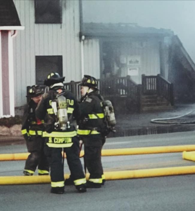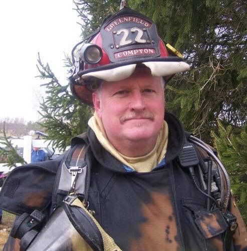 Firefighter/EMT Compton suffered a fatal heart attack several hours after helping to fight a three-alarm fire that destroyed several local businesses.