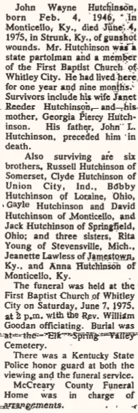 Trooper Hutchinson was attempting to make an arrest in McCreary County when he was shot and killed. The trooper was able to kill the suspect by returning fire before he died.
